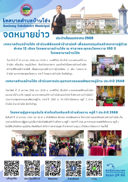 งานประชาสัมพันธ์ เทศบาลตำบลบ้านโฮ่ง ขอประชาสัมพันธ์ผลงานและกิจกรรม จดหมายข่าวประจำเดือนมกราคม 2568